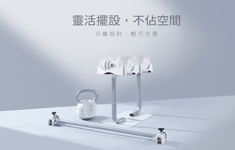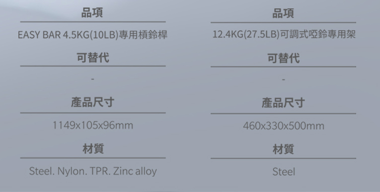【組合內含:27.5 LB 可調式啞鈴*2、40 LB可調式壺鈴*1、啞鈴架*1、Easy bar *1】