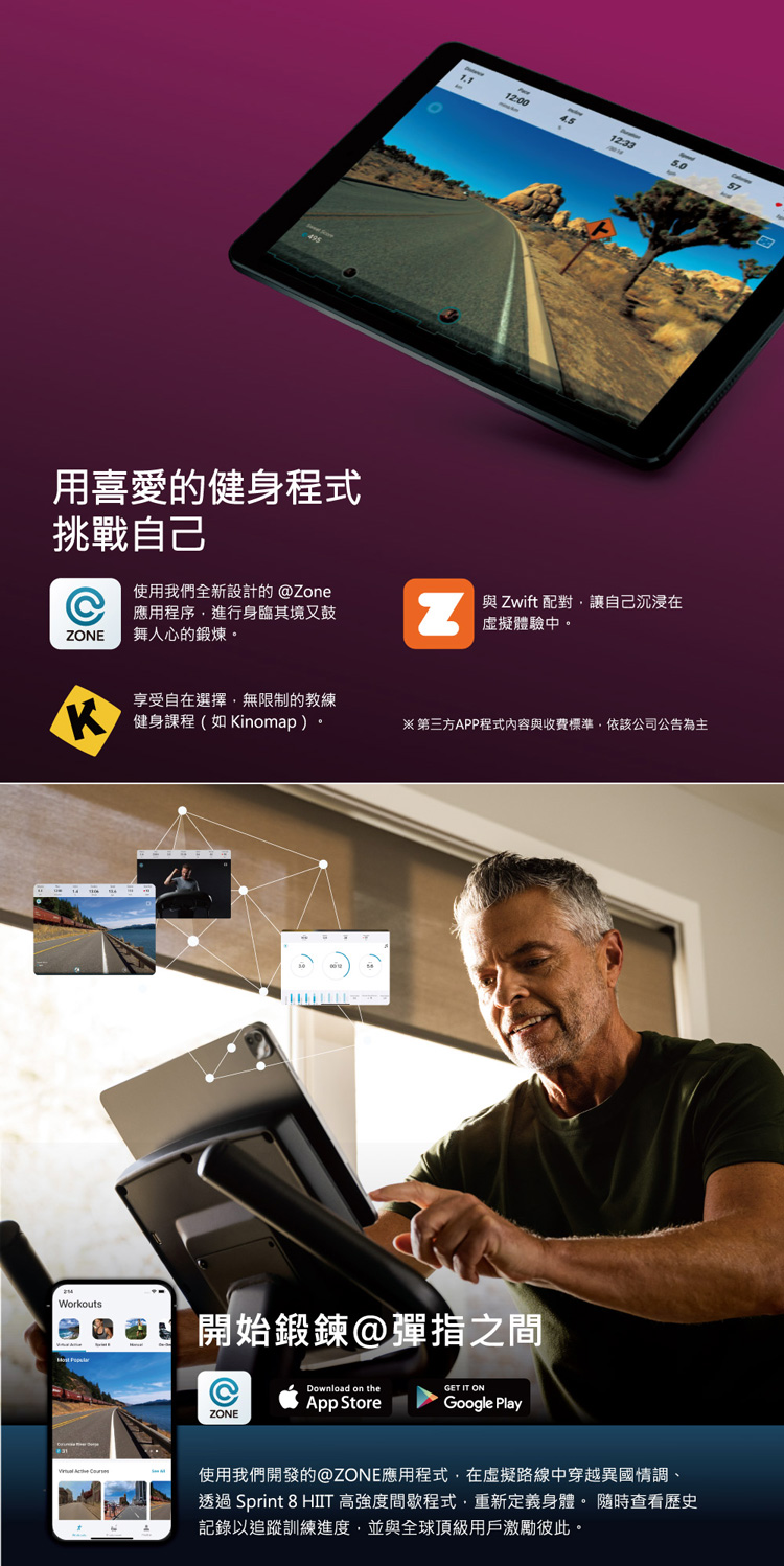 娛樂功能 可放置智慧型裝置閱讀架、適用多款熱門健身APP