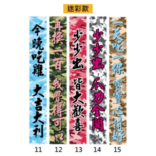 彩色玻璃貼紙-迷彩款直幅 尺寸:寬8×高60cm 本產品可客製化設計,您可以提供自己的設計或選擇我們的現有模板,創造獨一無二的貼紙。 更多其他款式請參考本賣場,玻璃貼紙除了娃娃機,還適用於商店櫥窗、玻璃門窗、汽車等各類平滑表面。 ※特別提醒: 1. 圖案【白色部分】實際張貼皆為【透明】! 2. 圖案皆為左右顛倒(鏡射),須貼至玻璃(櫥窗)內側,才會是正顯示! 3. 建議張貼時可以噴點水,再用卡片(信用卡、會員卡..等等)輕輕刮平,可以使氣泡較少,較美觀。 4. 現貨在底下選項皆可直接下標,若無現貨但想買的項目請用聊聊詢問! 5. 不需要鏡射或其他客製需求歡迎聊聊詢問! 娃娃機貼紙 防水貼紙 娃娃機台佈置貼紙 彩色玻璃貼 新春貼紙 新年快樂 恭喜發財 春聯 迷彩款 #客製 #娃娃機貼紙 #玻璃貼 #娃娃機佈置 #娃娃機商品 #娃娃機 #夾娃娃機 #布置 #景品 #夾物 #台主 #夾客