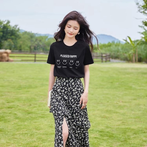 MD:花花 (150/45) 純棉的穿起來非常透氣舒服,黑色也非常顯瘦,可愛的圖案搭褲子跟裙子都很好看!衣服的長度可以讓150的我穿出下半身失蹤的感覺!