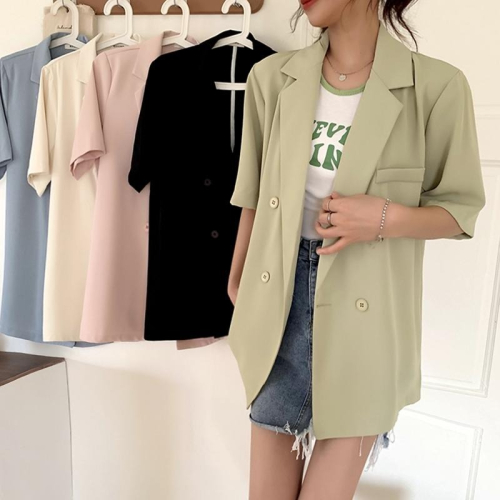 D:花花(150/45/綠色) 獨特的釦子造型!肩線做的很好看!穿上去也很挺~不會到太厚重!!顏色也非常日常!平常非常適合穿出門
