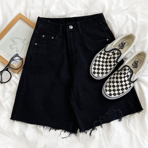 【RENA小舖 台灣現貨每天出】高腰顯瘦百搭闊腿毛邊五分牛仔短褲 闊腿短褲 五分褲 牛仔短褲【R19916】