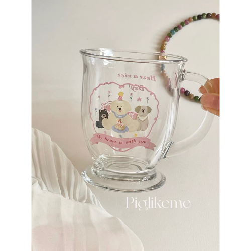 選了一款好可愛的小狗派對插畫圖案的杯子