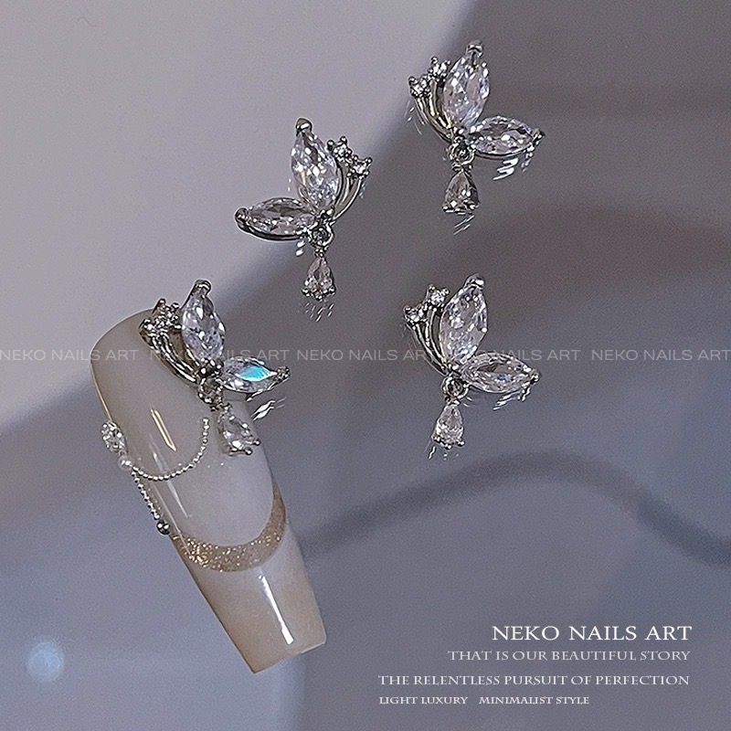 「冰晶半蝶」水鑽吊墜 鑽石蝴蝶翅膀 高保色金属美甲飾品