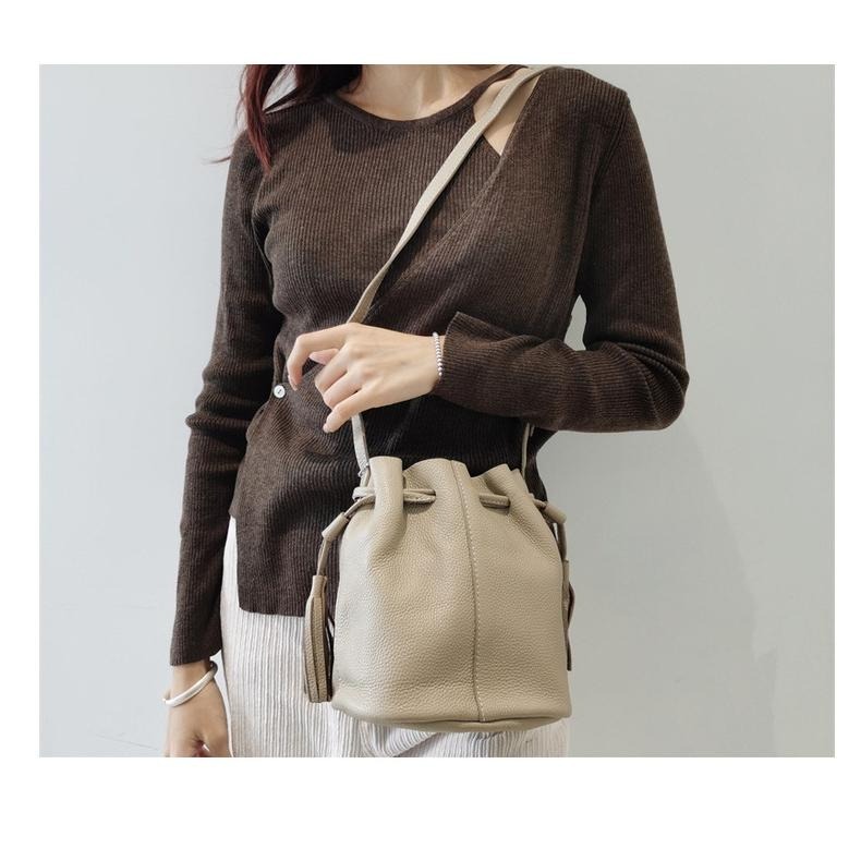 【cozyuti】軟皮荔枝紋水桶包 女生包包 水桶包 真皮材質 荔枝牛皮 手提包 肩背包 女生斜背包 小水桶包 側背