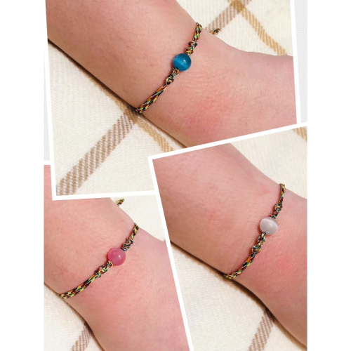 ✔ 名稱:手工編織五色繩貓眼石手繩