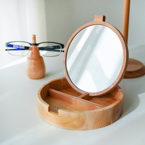 【日本CREER】NEIN MARKE/桃花心木圓形鏡盒/化妝鏡/飾品收納/實木/擺攤/市集道具