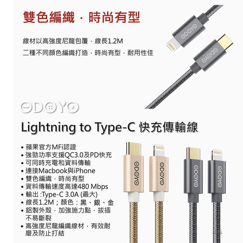 24h出貨🔥 ODOYO Lightning to Type-C 1.2M 原廠認證快充傳輸線 IPHONE 充電