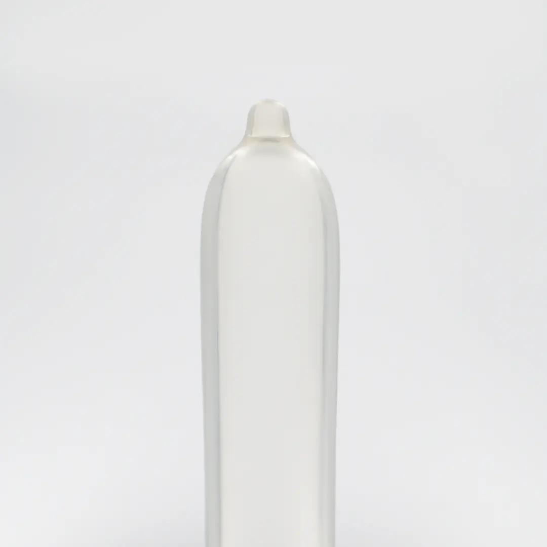 形狀與顏色:標準直身型 · 透明無色並有儲精袋設計