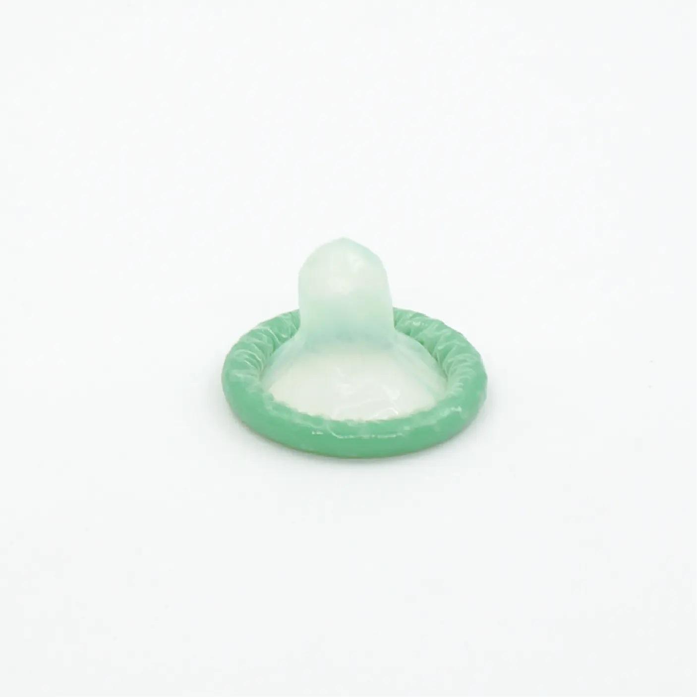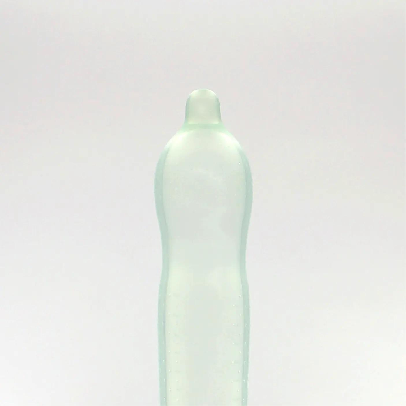形狀與顏色:一段波浪型 · 凸點表面 · 綠色並有儲精袋設計