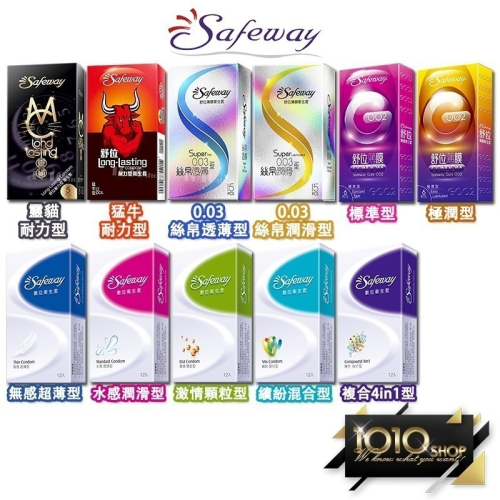 【1010SHOP】SAFEWAY 保險套 靈貓 猛牛 透薄 水感潤滑 無感超薄 激情顆粒 繽紛混和 複合型 避孕套