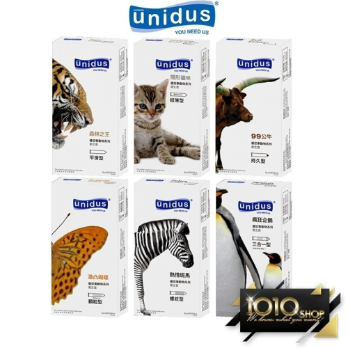 【1010SHOP】unidus 優您事 保險套 99公牛持久 貓咪超薄 企鵝三合一 蝴蝶顆粒 斑馬螺紋 老虎平滑
