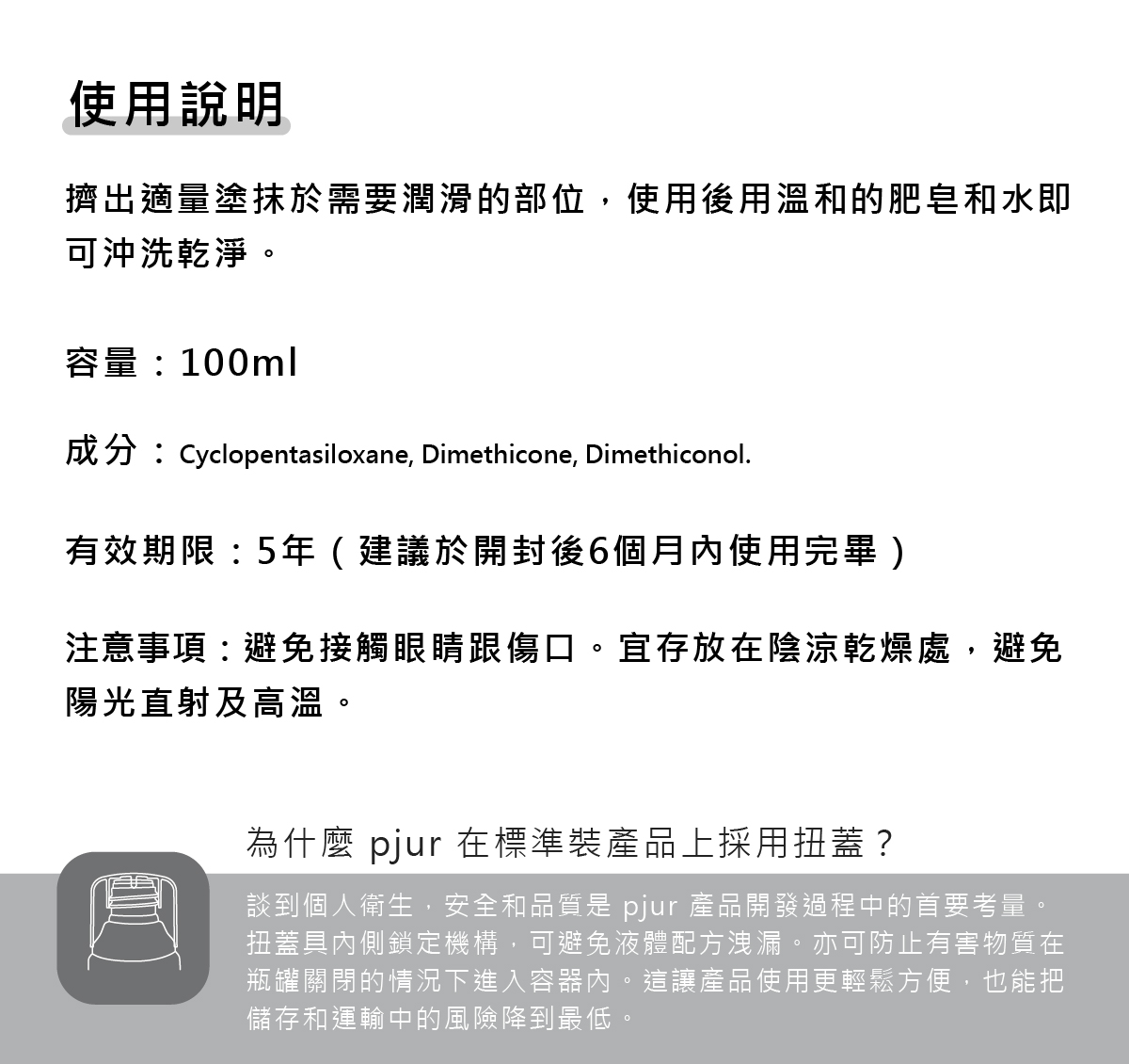 功效:矽性配方具卓越的保濕、濃稠滑順且不黏膩