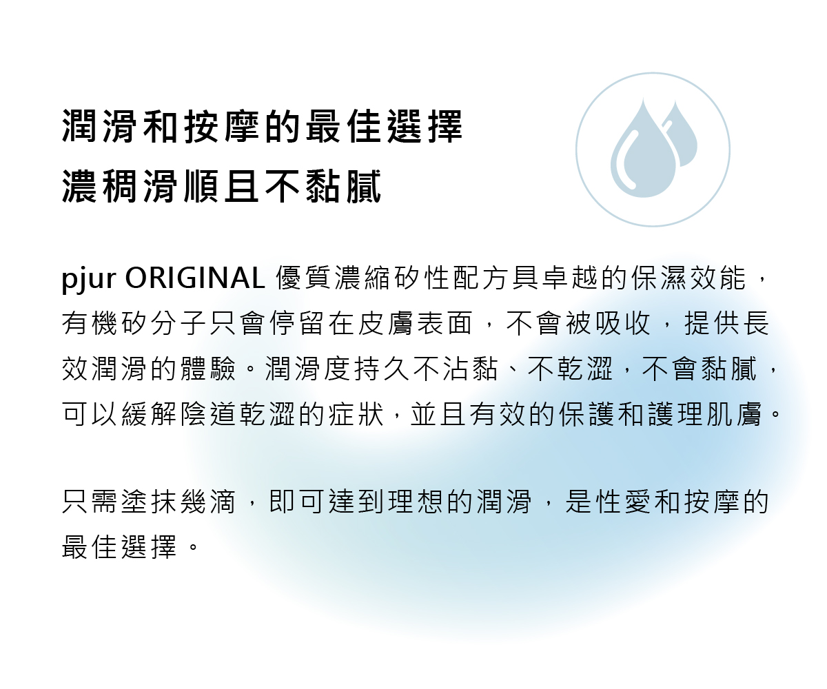 pjur ORIGINAL 是全球首創矽性潤滑液,也是目前市面上最暢銷的矽性潤滑液。