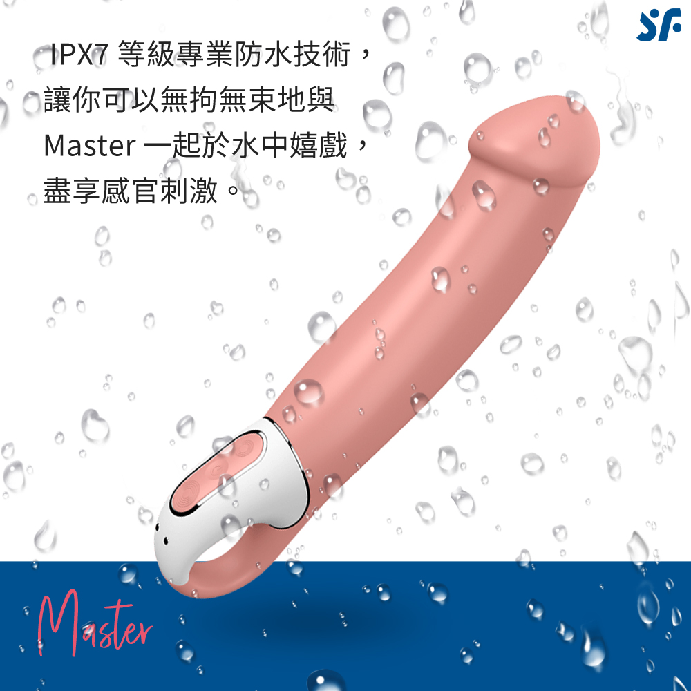 IPX7 等級專業防水技術,讓你可以無拘無束地與 Master 一起於水中嬉戲,盡享感官刺激。