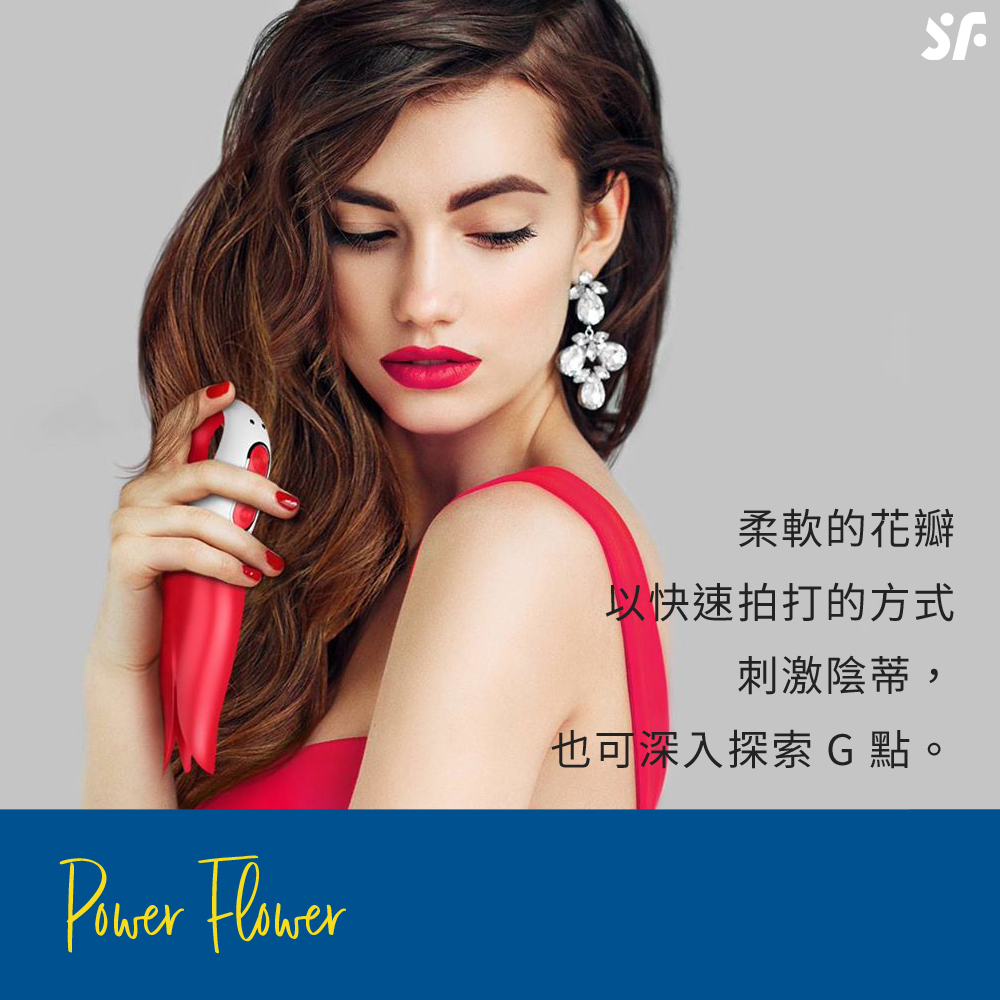 柔軟的花瓣以快速拍打的方式刺激陰蒂,也可深入探索 G 點,在慾望的風中顫動,比舌頭更靈敏的 Power Flower ,令刺激直達大腦,釋放煙花般的高潮快感。與伴侶一起感受花瓣在全身敏感帶,探索摩擦的激烈刺激。