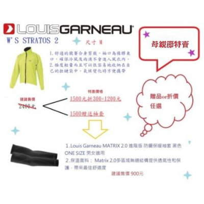 【精選特賣】㊝LOUIS GARNEAU W'S STRATOS 2 女款 自行車 防風 外套 水藍/黃 ö優惠任選