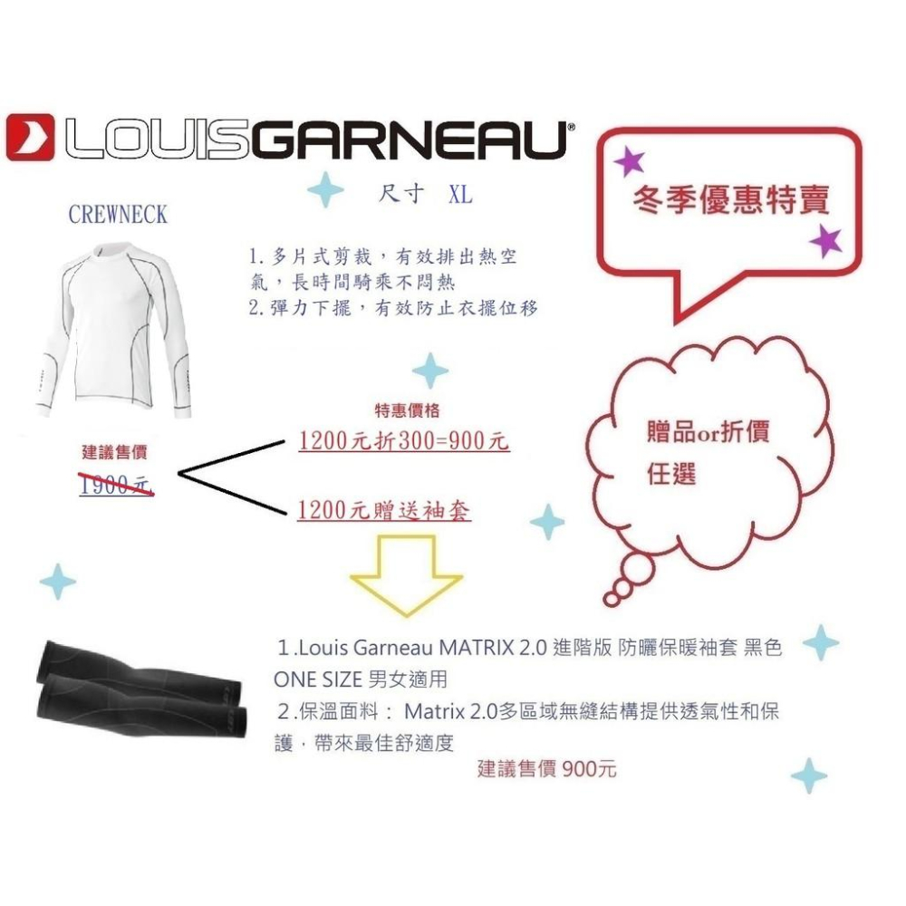 LG CREWNECK-145 男款長運動衣建議售價1900 size : XL only ▶商品特色 ■ 兼顧保溫,透氣雙重功效 ■ 多片式剪裁,有效排出熱空氣,長時間騎乘不悶熱 ■ 平鎖接縫不會干擾外層的貼合性,並減少內部摩擦,使您保持舒適。 ö冬季送暖,新增優惠兩選一 1. 現折300 2. 贈送價值900袖套