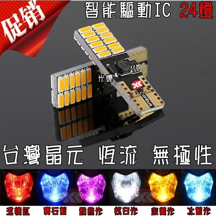 規格數據:T10適用規格、12V寬電壓、 正反兩面共24燈珠貼片