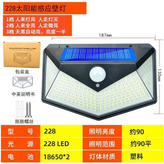 ●感應類型:①人來燈亮人走燈滅;②人來高亮,人走微亮;③天黑自動亮,亮度一半