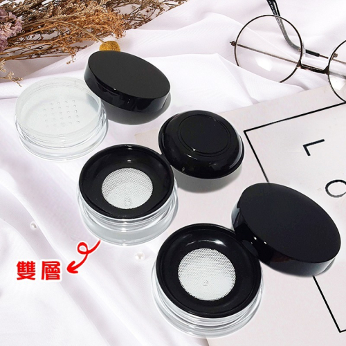 *LyDia甘仔店* DIY 10g 黑色 旋蓋 蜜粉盒 附粉撲 蜜粉 分裝盒 篩網 彈力網 網格 散粉盒 空盒 便攜