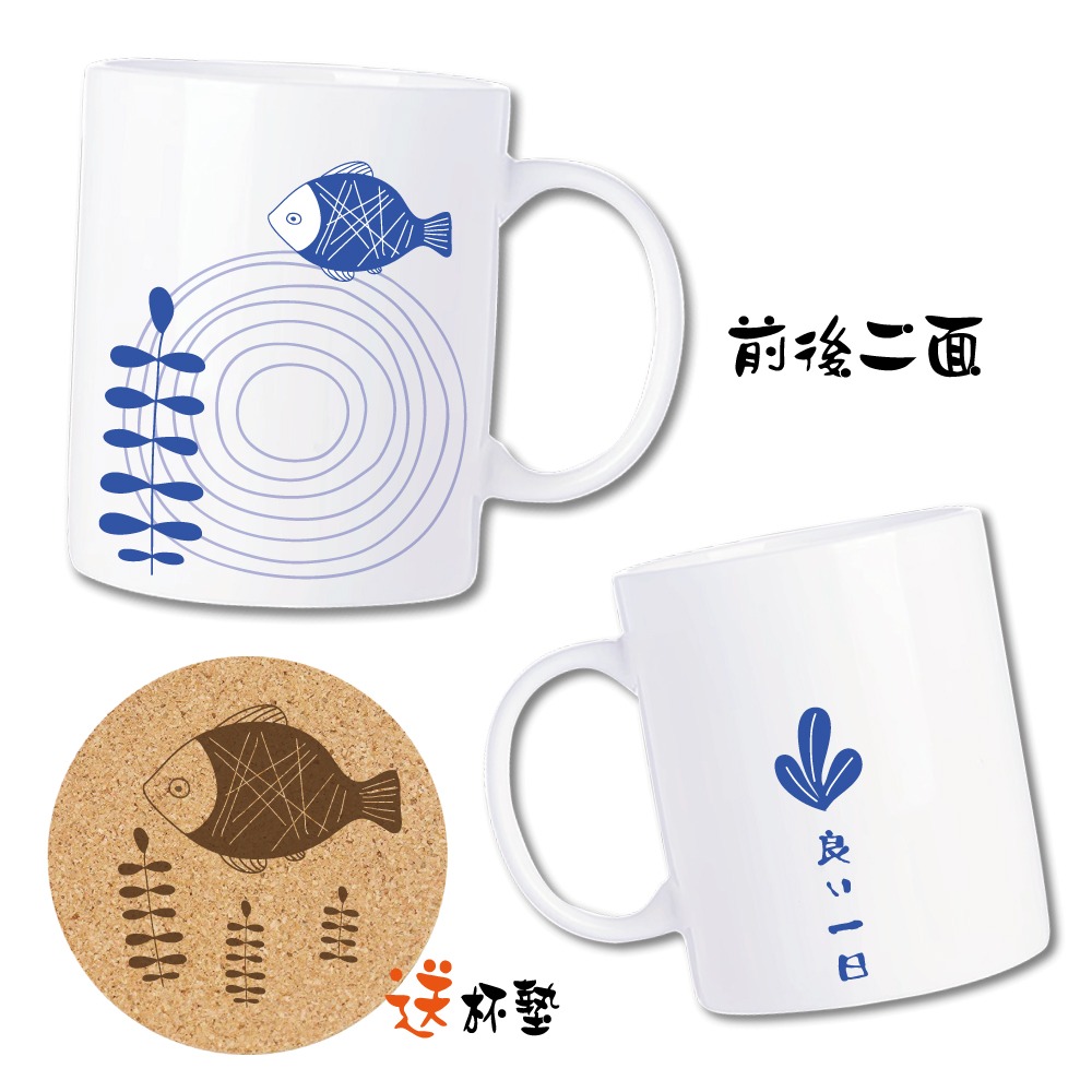 直筒型馬克杯 330ml 藍色小魚 (送杯墊)