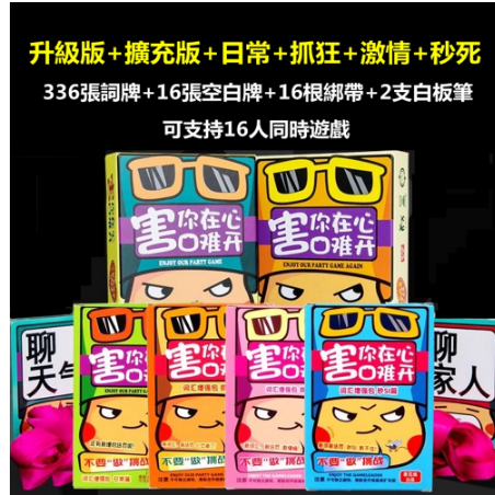 但是~劃重點!【擴充版】和【綁帶版】的詞匯是完全不同的!並且~懲罰也基本不一樣!再並且~這兩個版本的詞匯是互為補充的,在遊戲時會產生更多的變化和更多的套路,所以兩個版本一起玩,遊戲會更好玩也更耐玩!