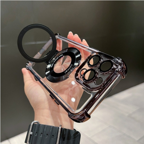 【漫格子】新升級四角加厚氣囊磁吸支架保護殼-石墨黑 適用蘋果 iPhone 15 手機殼12 13 14 pro max