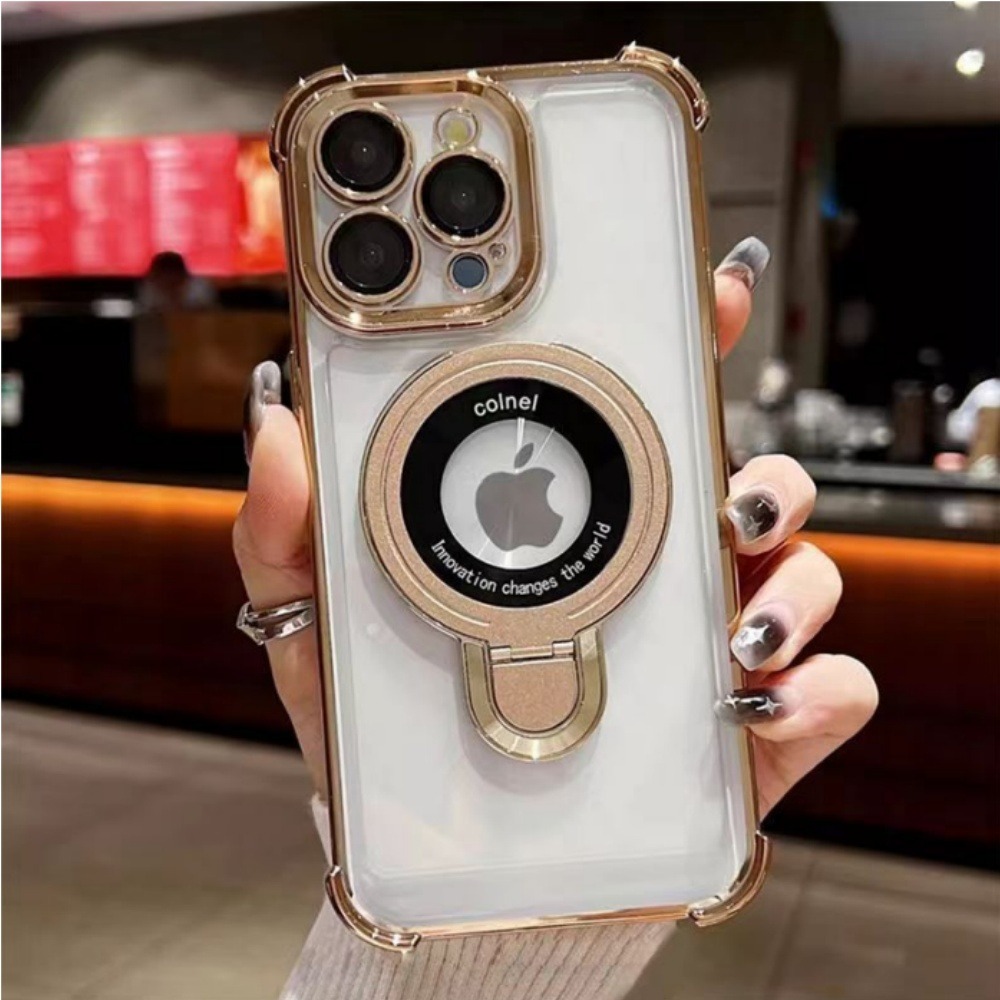 【漫格子】新升級四角加厚氣囊磁吸支架保護殼-金色 適用蘋果 iPhone 15 手機殼12 13 14 pro max