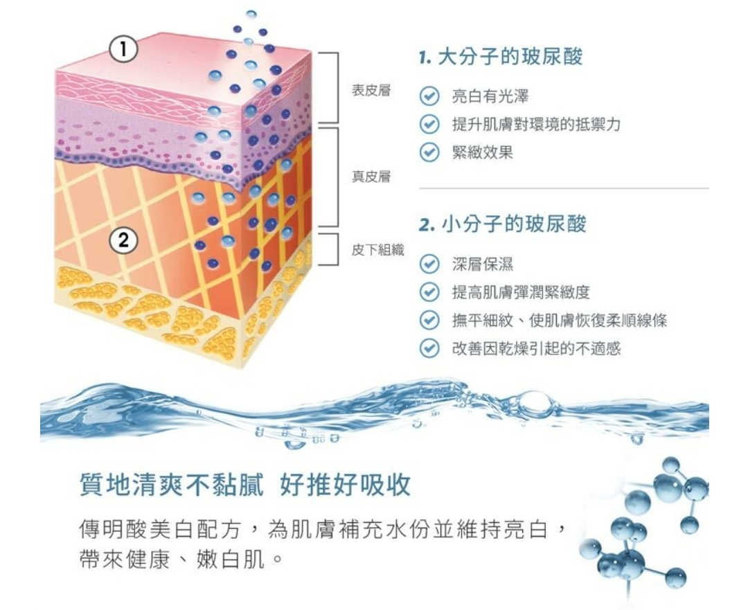 ●改善暗沉、淨白肌膚,同時搭配玻尿酸成分,幫助肌膚補水,有效水嫩、柔白肌膚