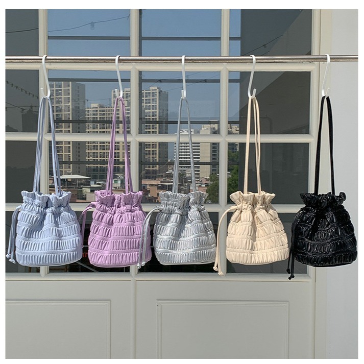 【好.樣.日.子】水桶手拿皺摺抽繩輕巧包 雲朵包 單肩包 手提水桶包 皺摺束口包