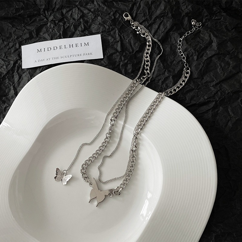 【蝴蝶造型 ✕ 雙層疊戴 ✕ 鈦鋼質感】這款蝴蝶雙層設計項鍊,集浪漫與氣質於一身,適合日常穿搭與約會場合。雙層骨鍊結構展現層次感,鎖骨鍊長度剛好點綴頸間。選用高品質鈦鋼材質,不易褪色、不易過敏,是女孩們不可或缺的百搭小心機飾品!