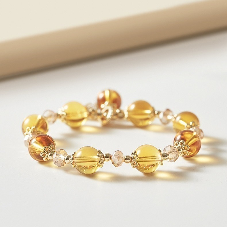 【材質】電鍍14k 黃水晶10mm 花朵8mm 琉璃5mm