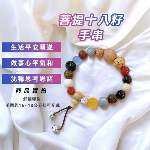 十八籽手鏈,採用鳳眼菩提、紫檀木,金剛菩提、黑曜 石等多種檀木,