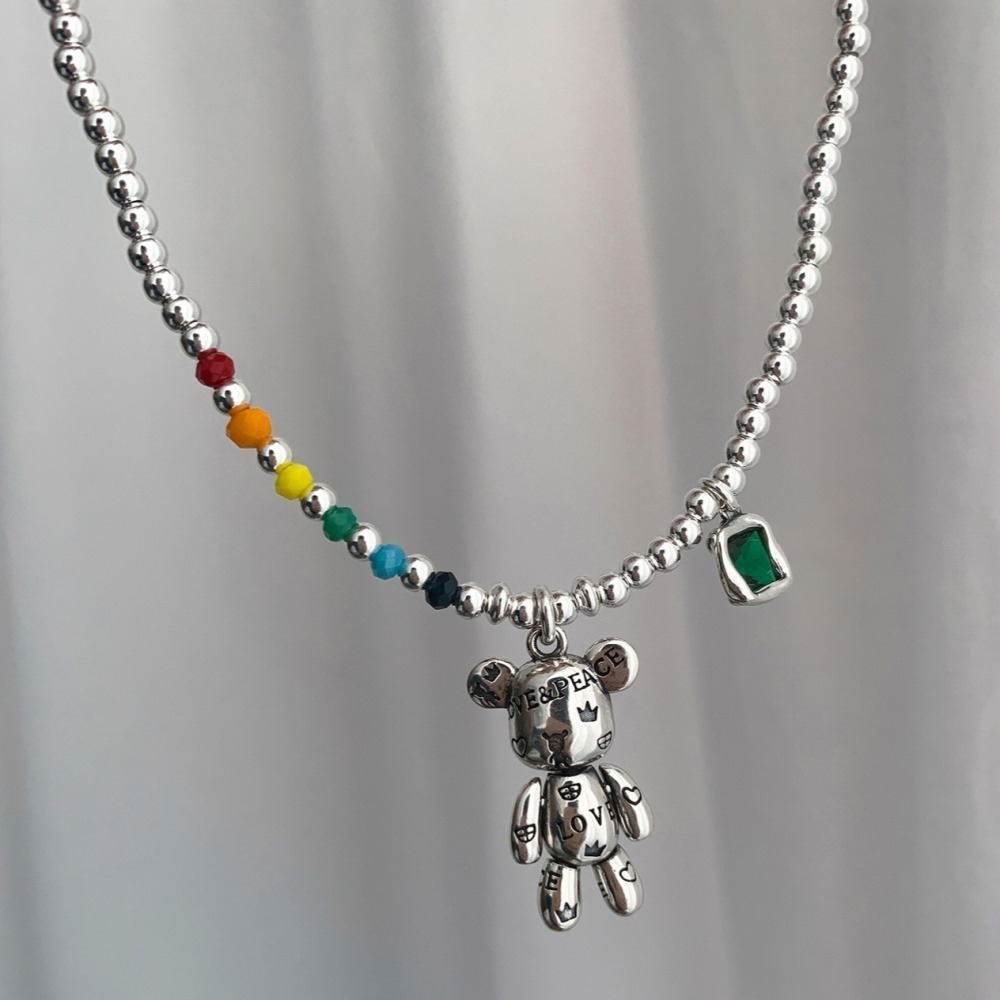 【品名】S925彩虹圓珠小熊設計款項鍊
