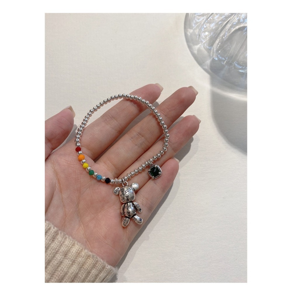 【品名】S925彩虹圓珠小熊設計款手鏈
