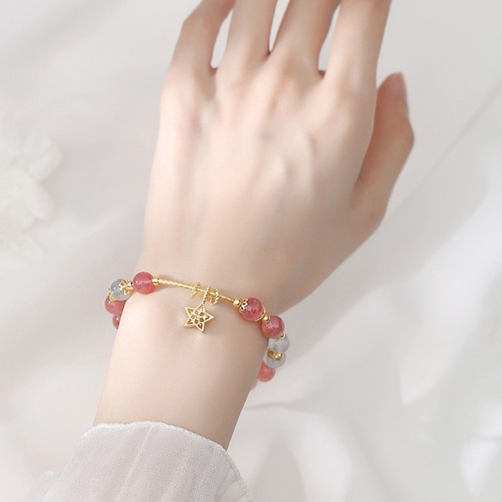 【材質】電鍍14k 草莓晶7mm 灰月光石7mm