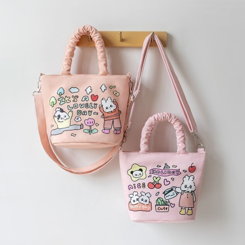 可愛卡通塗鴉手提斜背包 18cm*20cm*12cm(拉鍊背帶)