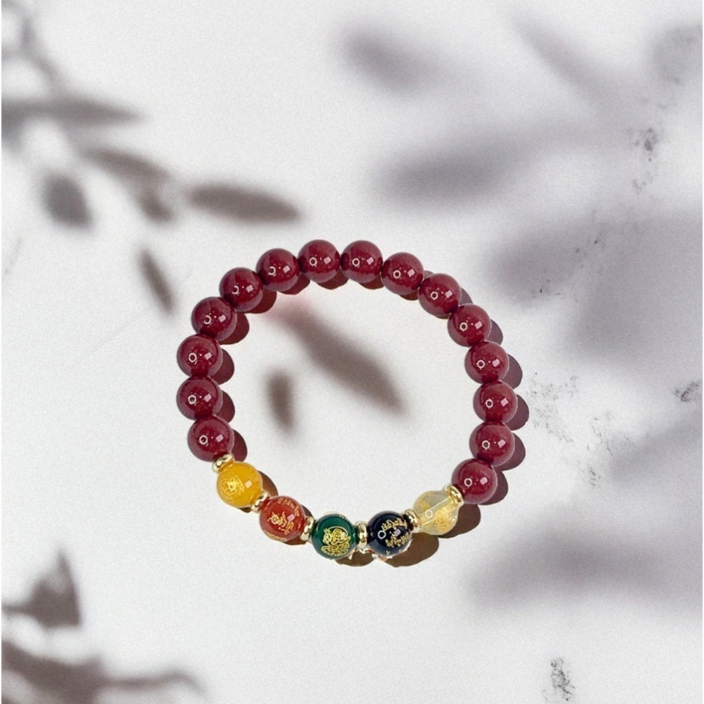 【品名】五路財神瑪瑙轉運珠朱砂串珠手串