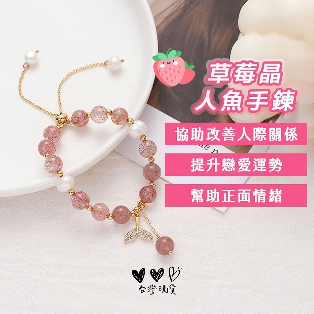 【品名】草莓晶 水晶手鍊 人魚手鍊