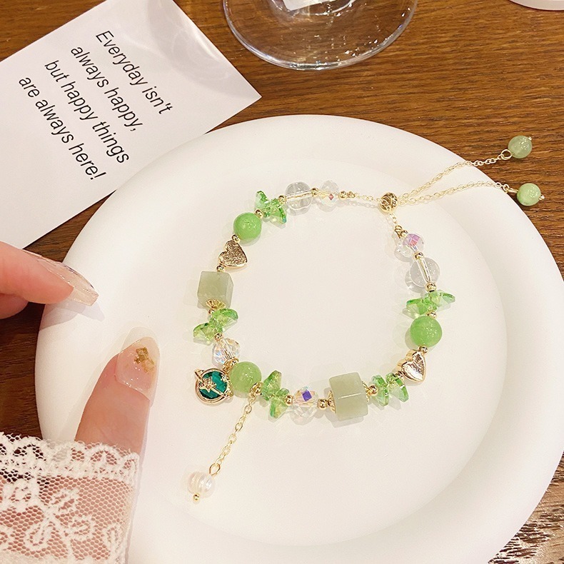 這款星球造型水晶手鍊,以紫水晶與綠水晶為主角,象徵平靜與成長,搭配可滑動調節扣設計,戴起來舒適貼合,適合日常穿搭或送禮,清新又充滿好能量!