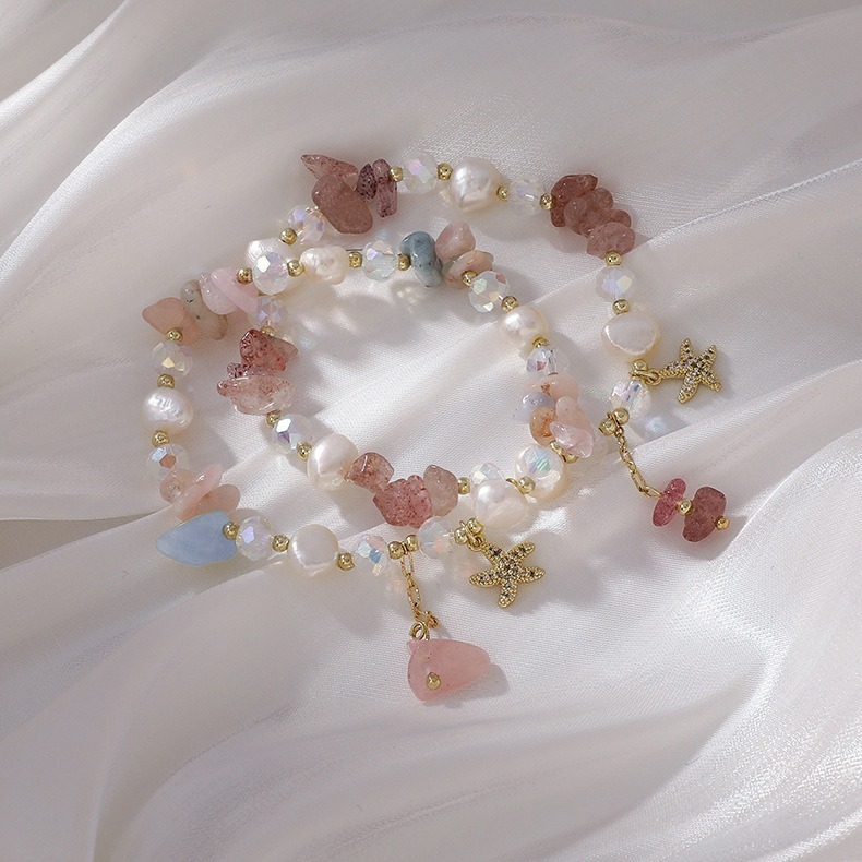 這款手鍊融合草莓晶與摩根石碎石,自然不規則造型搭配淡雅珍珠,呈現浪漫甜美風格,散發復古高級感。彈性設計佩戴方便,適合日常穿搭、提升氣場,也具人緣招桃花寓意,是送禮與自用皆宜的開運水晶飾品!