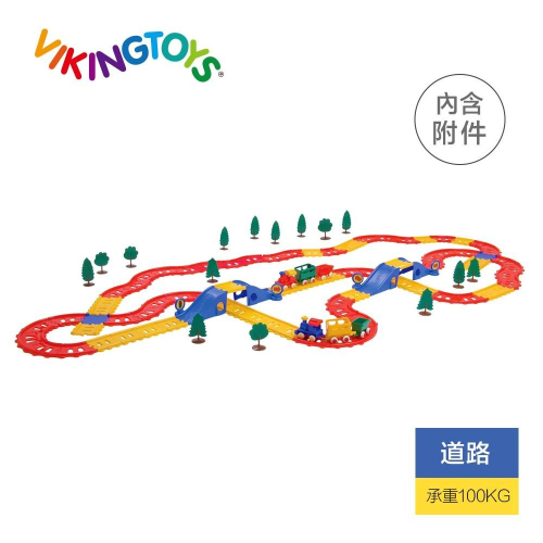 瑞典Viking toys踩不壞/不刮手的維京玩具-City車車樂園系列-森林城市搬運列車豪華組 (100pcs)