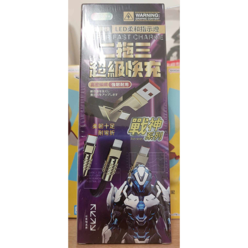 戰神系列 2拖3 超級快充 兼容多用 鋅合金 充電線