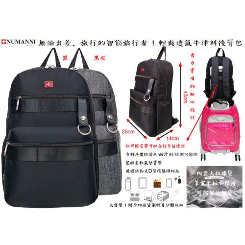 70-66100-1【NUMANNI 奴曼尼】無論出差、旅行的智能旅行者!輕爽透氣牛津料後背包