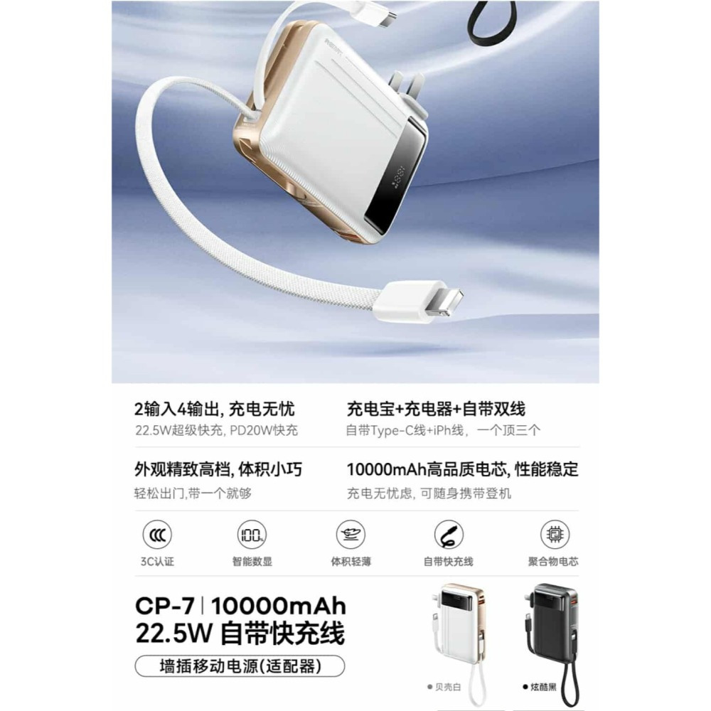 REMAX 22.5W 自備快充線 數顯 牆插 10000mAh 38.5WH 可上飛機 行動電源
