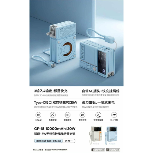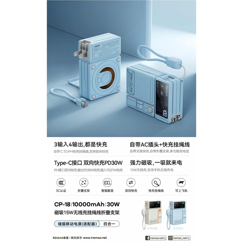 REMAX 磁吸 15W 無線充電 30W+22.5W 行動電源 帶插頭 快充線 牆插10000mAh 38.5WH 可上飛機 行動電源
