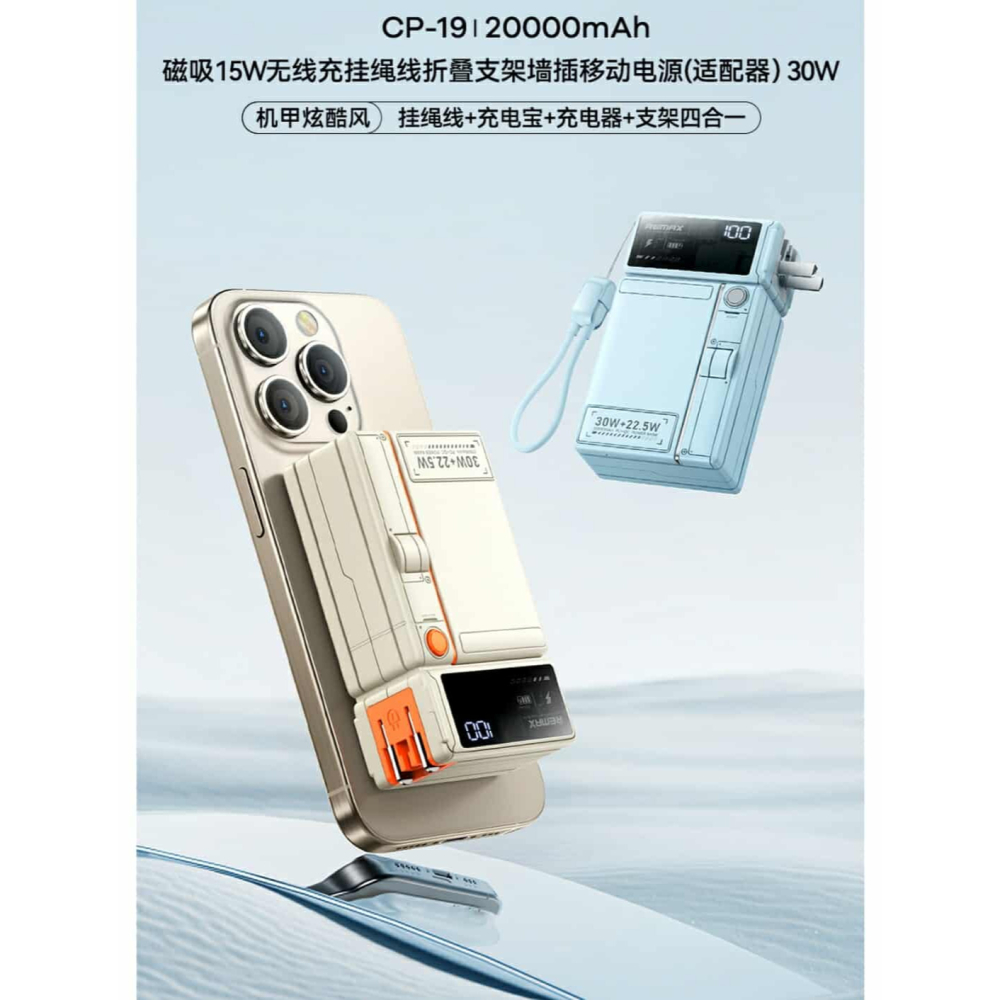REMAX 磁吸15W無線充 PD30W+22.5W 掛繩線 折疊支架 牆插 可上飛機 77WH 行動電源20000mA