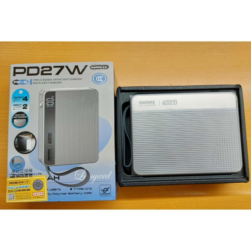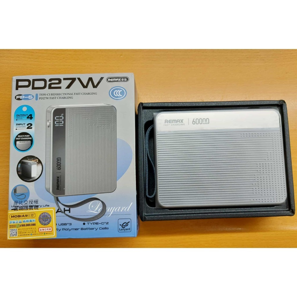 REMAX LED燈 PD27W 超快充 戶外行動電源 60000mAh 大容量行動電源