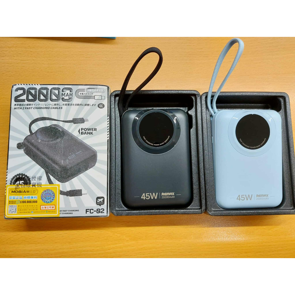REMAX 潛航者 45W 自備雙線 快充線 數顯 大功率20000mAh 小巧 可上飛機 77WH 行動電源